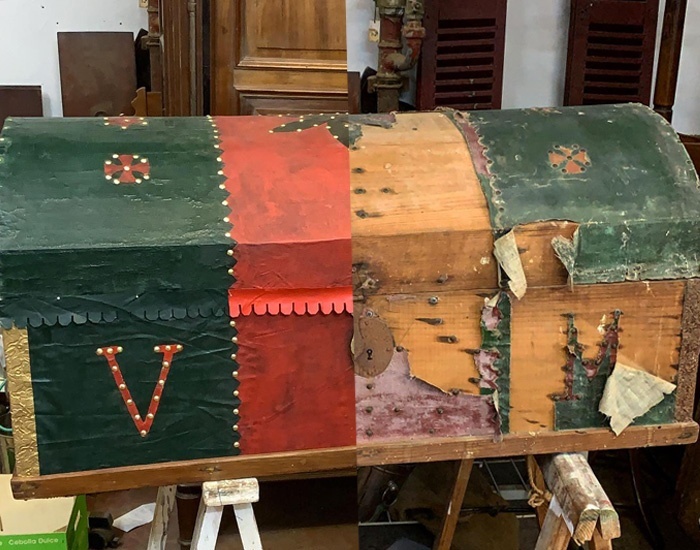Reconstrucción del acabado de original baúl de viaje